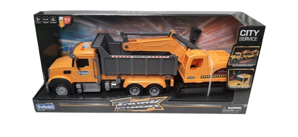 Látványos játék jármű szett, amely egy billenős platós játék kamionból és egy különálló lánctalpas markológépből áll. A két jármű önállóan is használható, így a gyerekek valódi építkezős és munkagépes jeleneteket játszhatnak el. A lánctalpas markológép mozgatható karral rendelkezik, a kamion billenős platója pedig lehetővé teszi a rakodást és a szállítást.