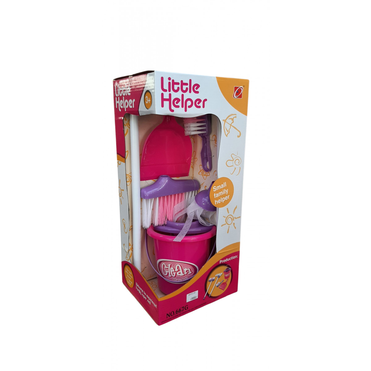 A szettben minden megtalálható, amire egy kis takarító lánynak vagy fiúnak szüksége lehet: seprű, lapát, kefe, felmosó és vödör.