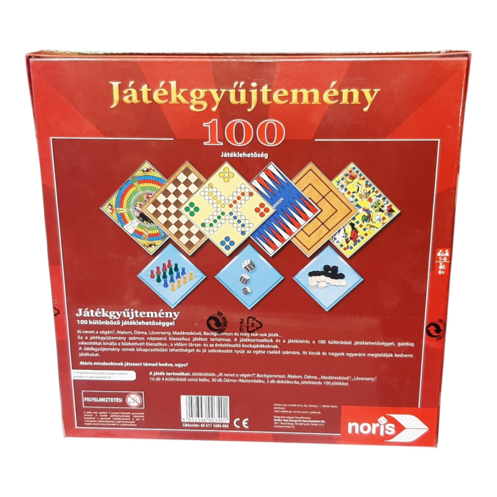 A Játékgyűjtemény 100 egy sokoldalú társasjáték-válogatás, amely akár 100 különböző játéklehetőséget kínál egyetlen dobozban. A klasszikus játékok – mint például Ki nevet a végén?, Malom, Dáma, Lóverseny és Backgammon – garantáltan lekötik kicsiket és nagyokat egyaránt.