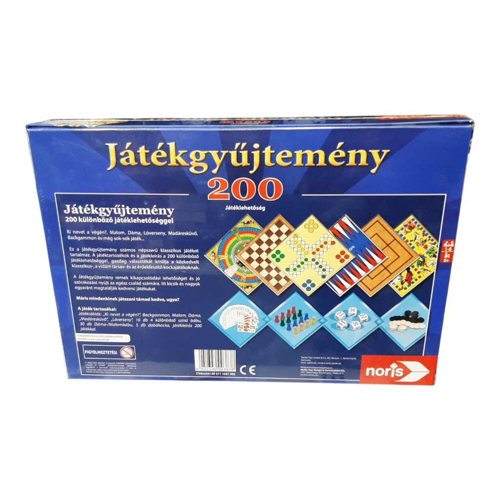 A Játékgyűjtemény 200 féle egy rendkívül gazdag társasjáték-válogatás, amely akár 200 különböző játéklehetőséget kínál egyetlen dobozban. A klasszikus játékok között megtalálható többek között a Ki nevet a végén?, Malom, Dáma, Lóverseny, Backgammon és számos kártyajáték is, így minden korosztály találhat benne kedvére valót.