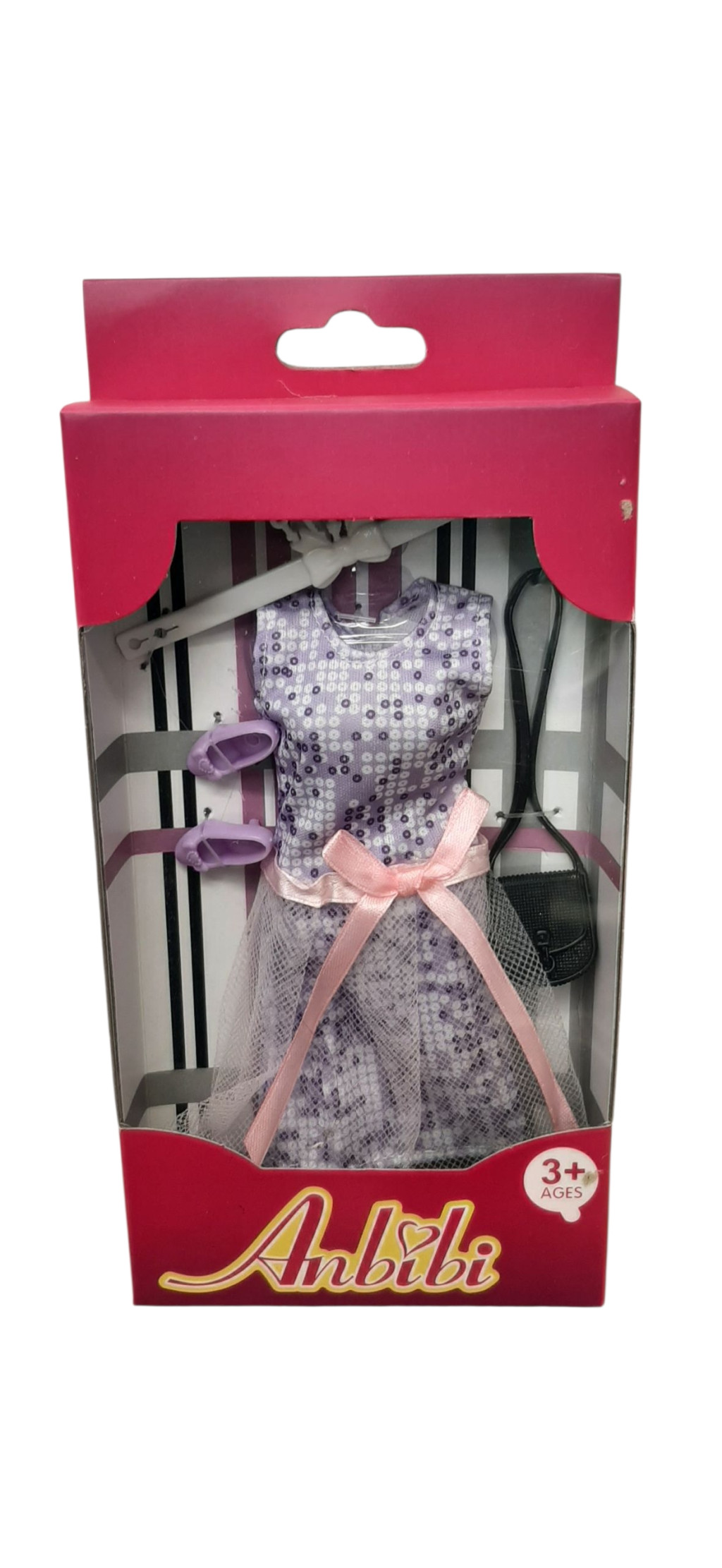 Babaruha kiegészítőkkel – lila tüllszoknyás ruha